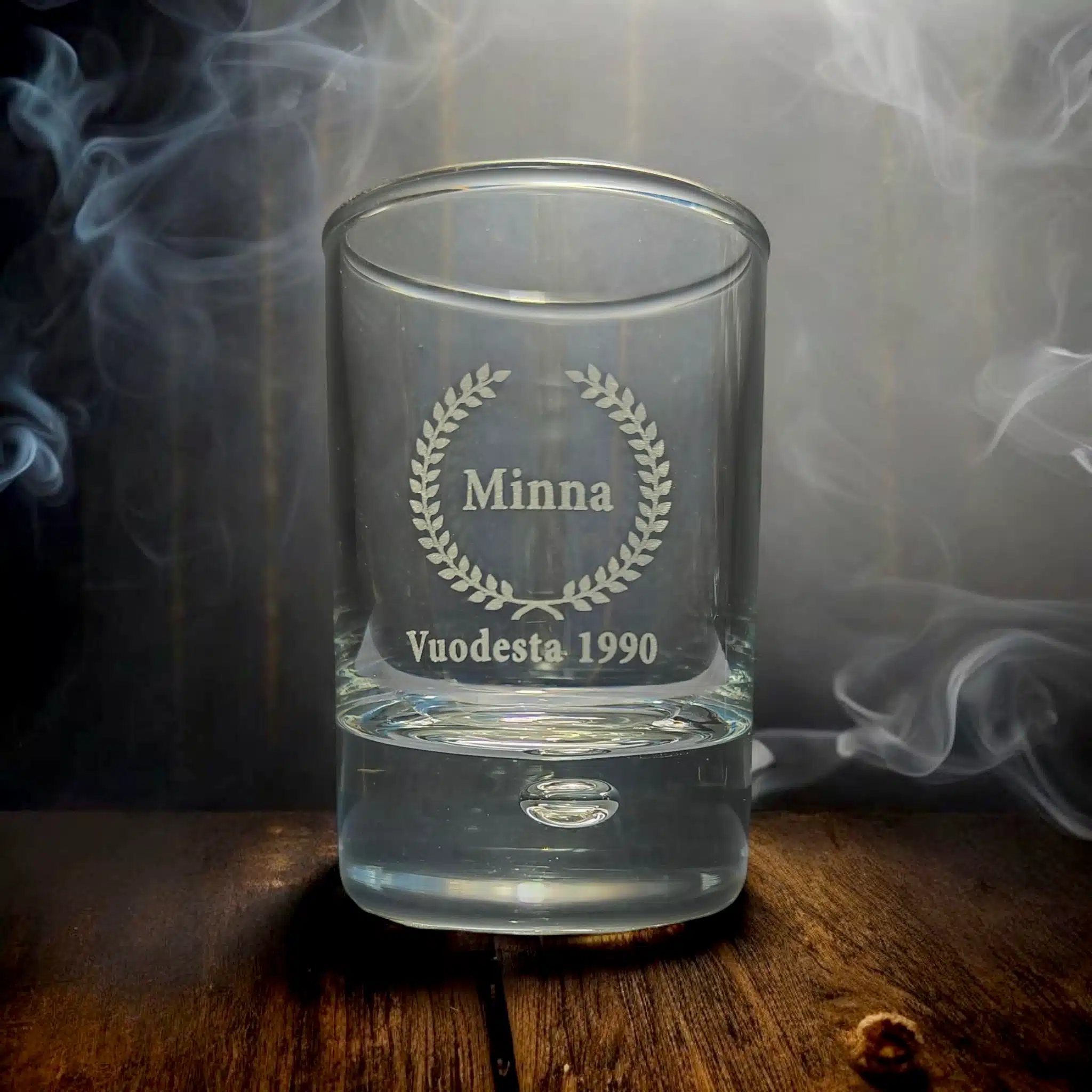 Shottilasi omalla tekstillä tai logolla on suunniteltu ja kaiverrettu Suomessa.