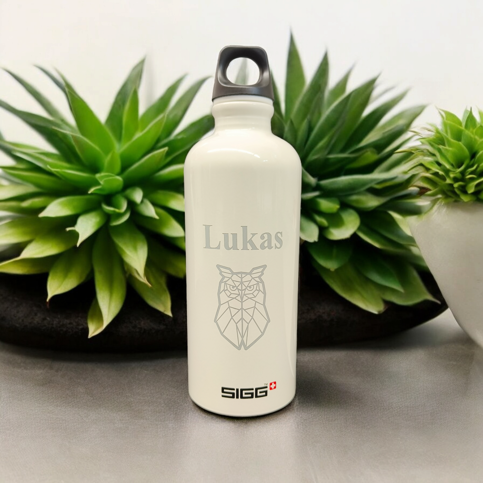 - SIGG juomapullo valkoinen on valmistettu Sveitsissä ja kaiverrettu Suomessa