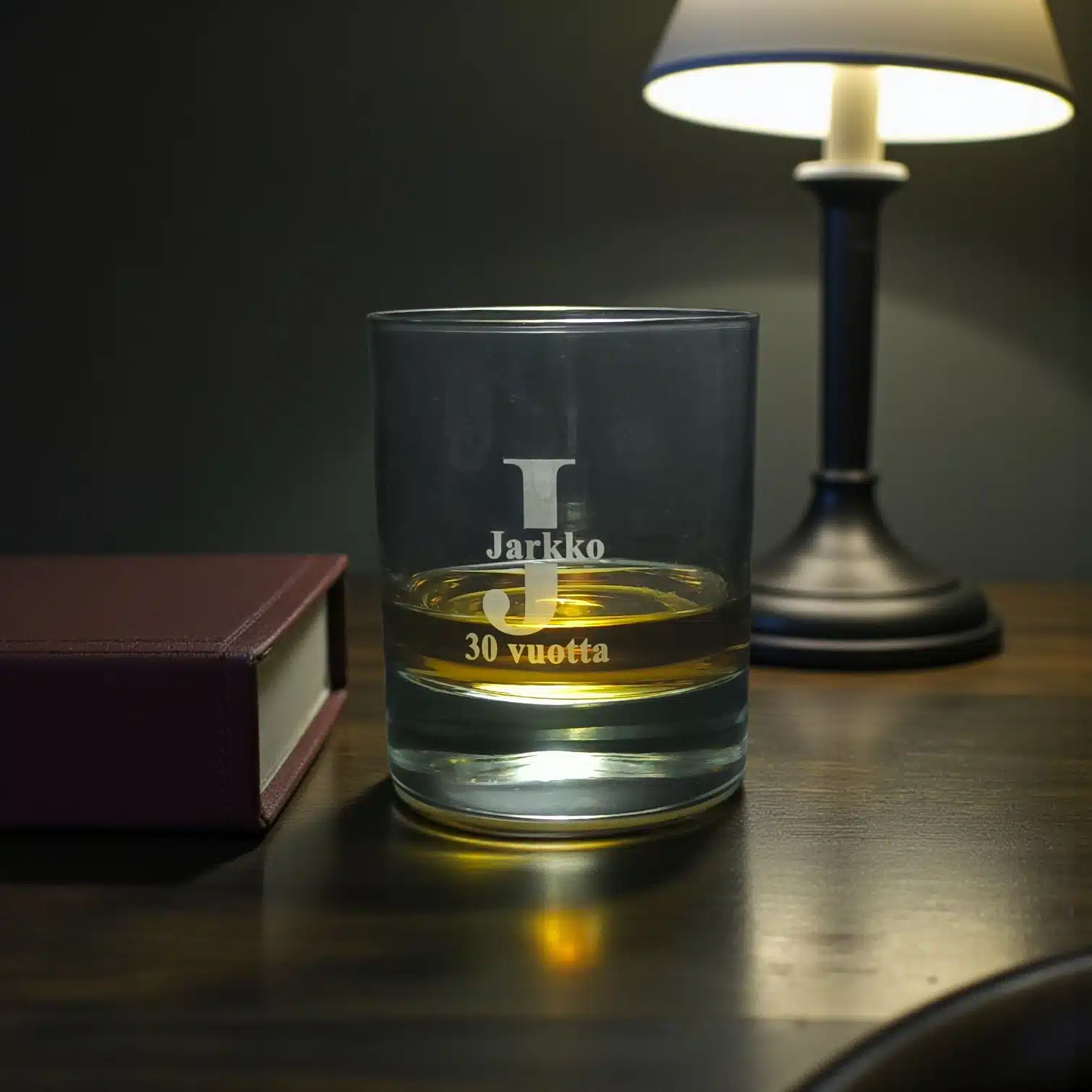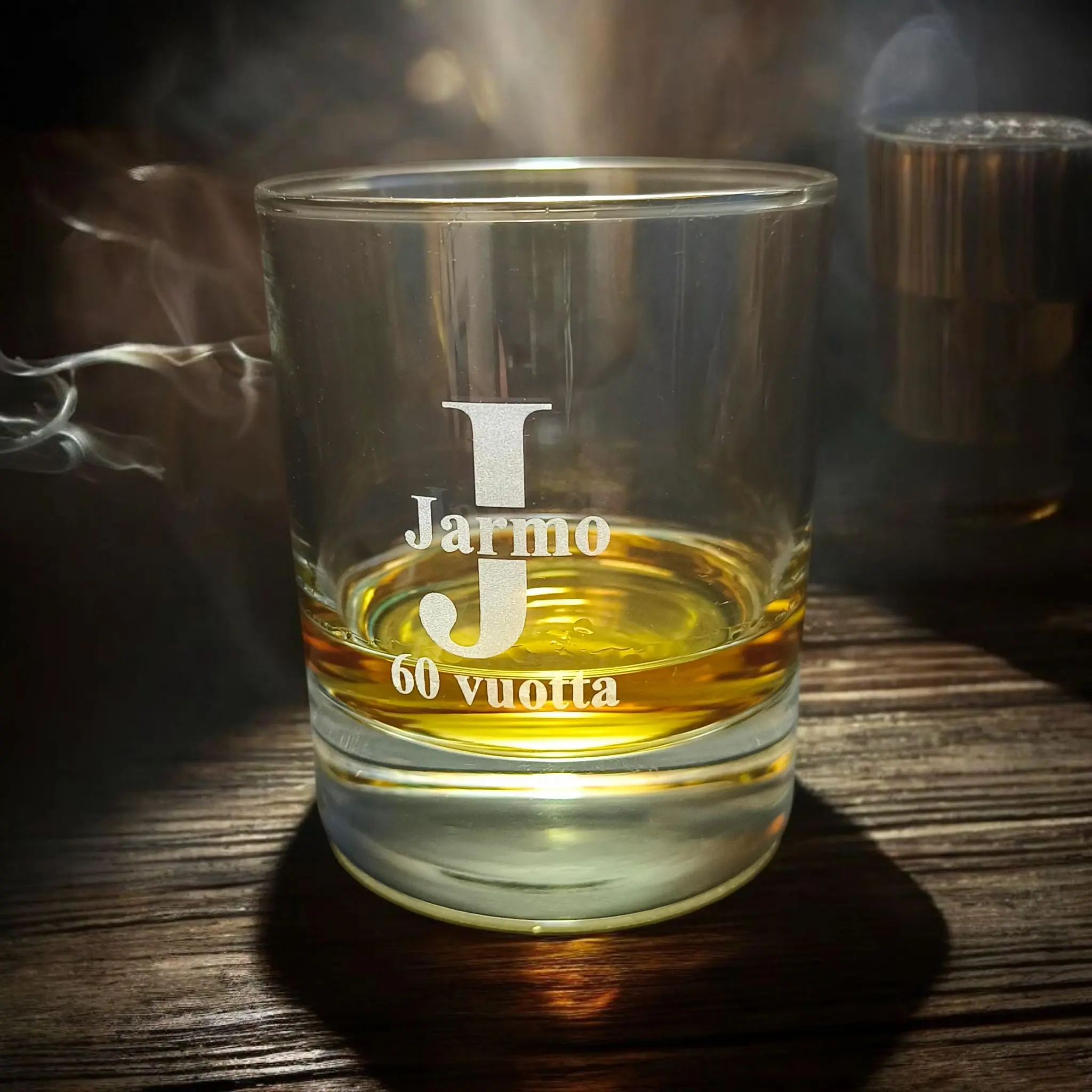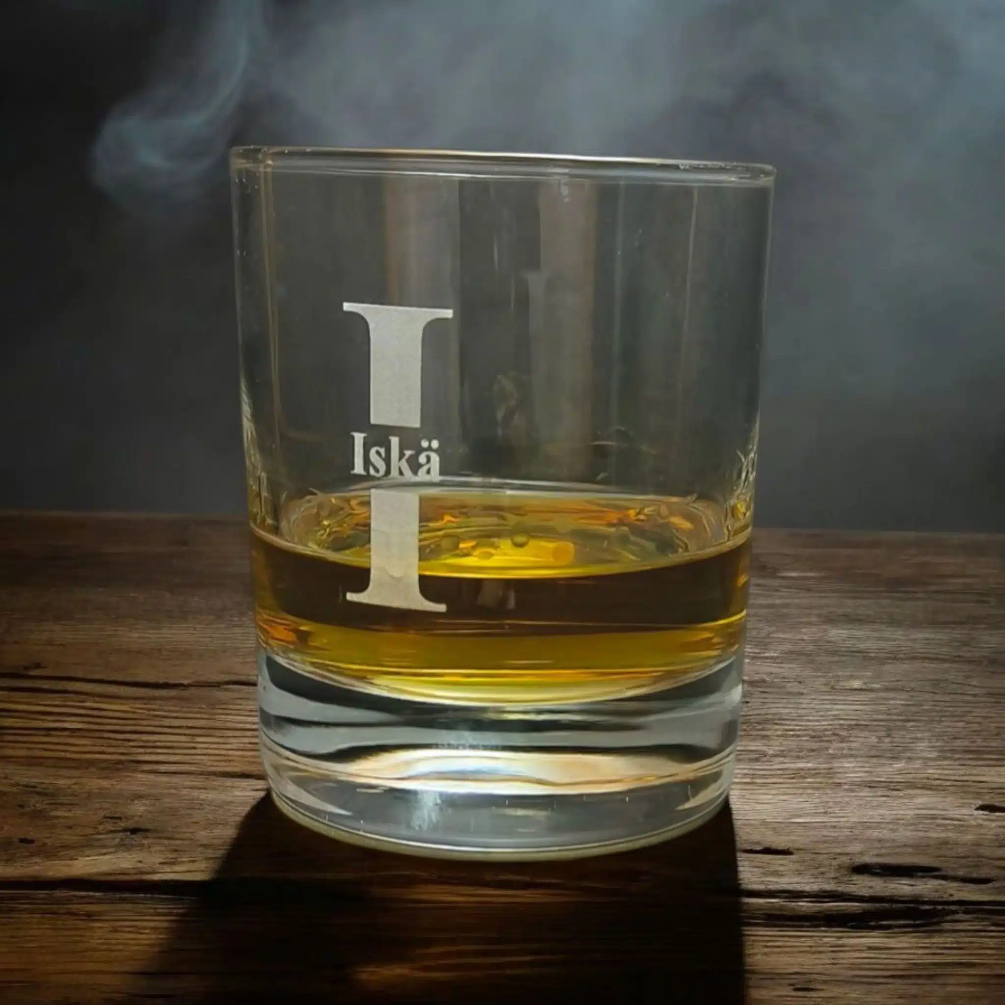 Viskilasiin voidaan kaivertaa nimi, lempinimi tai omaa tekstiä.