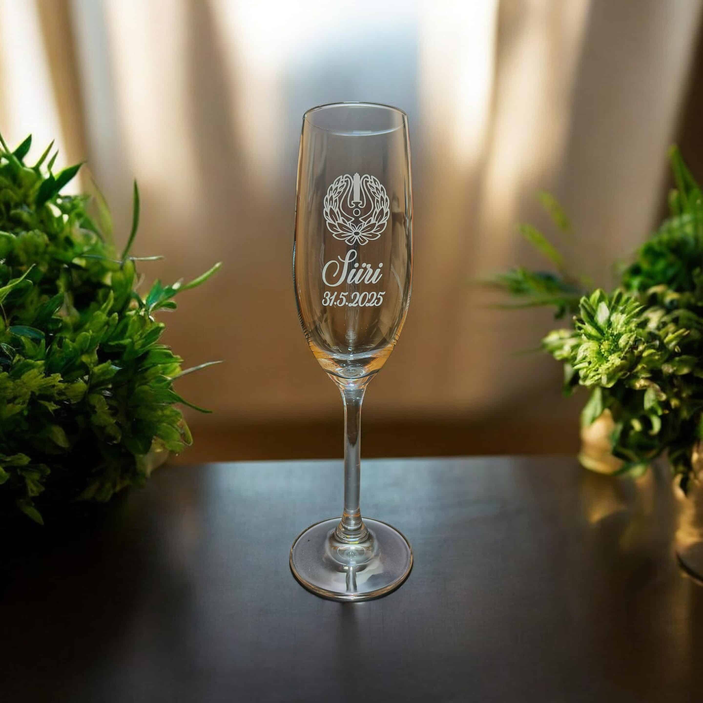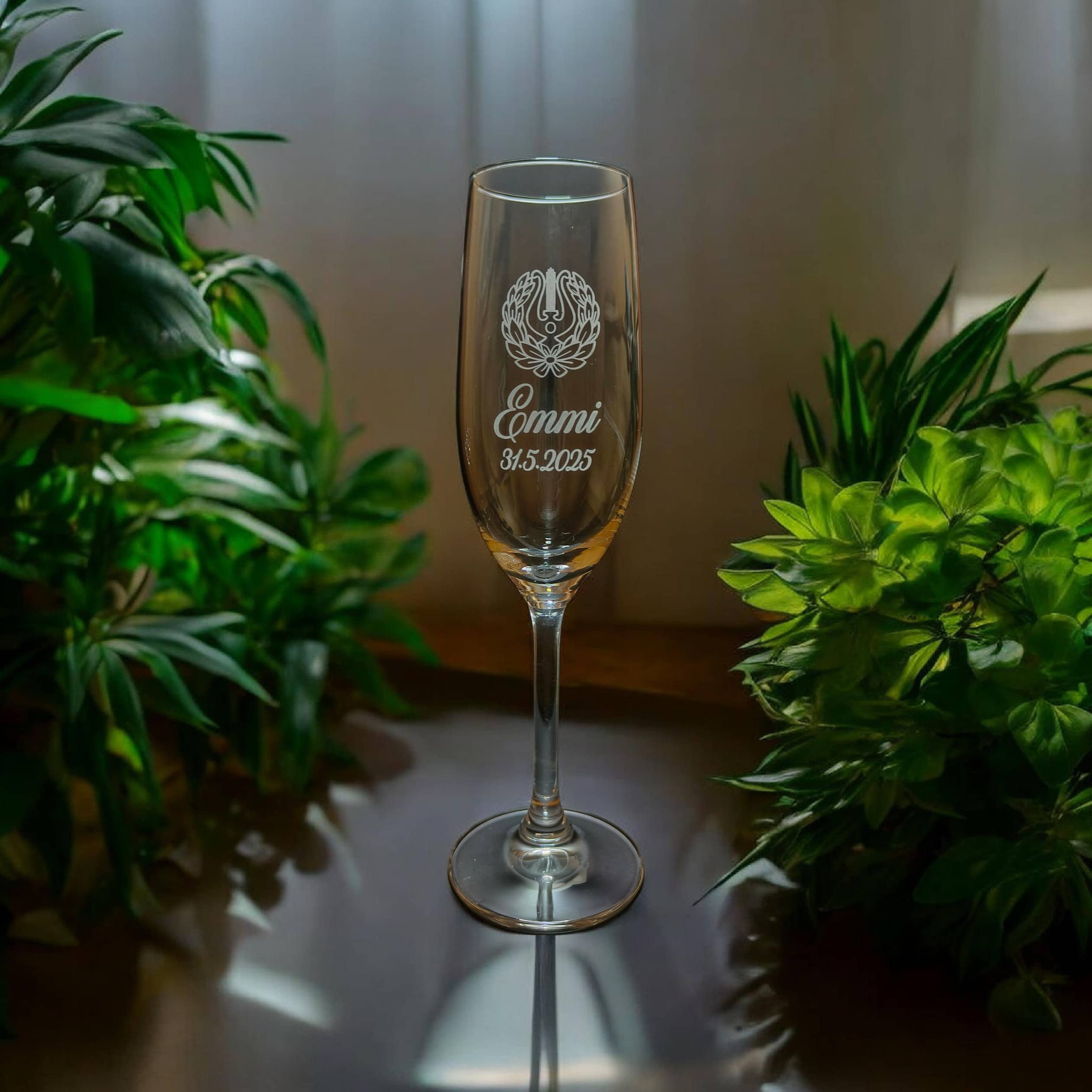 Ylioppilasjuhlan kruunaava kuohuviinilasi omalla kaiverruksella! 🥂🎓