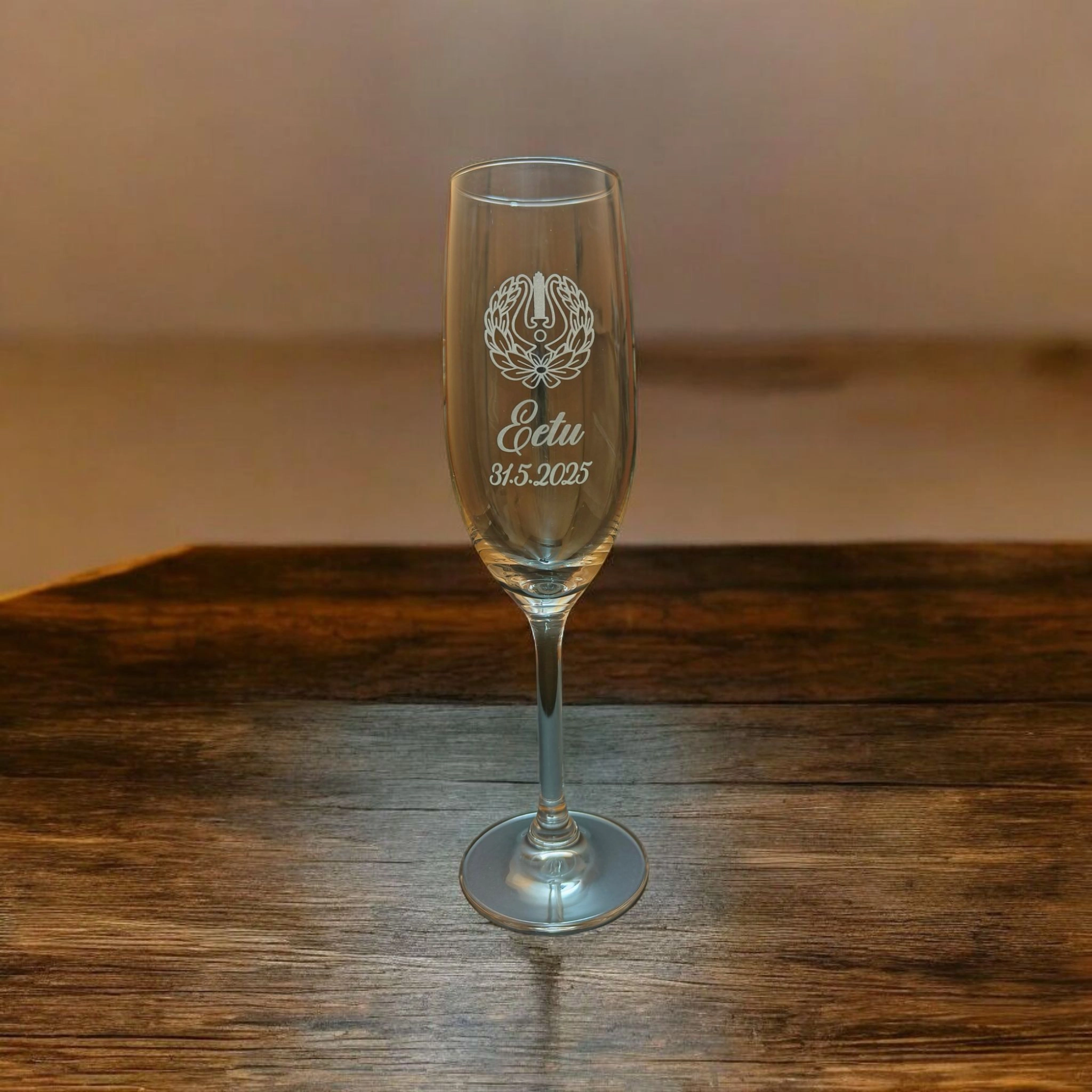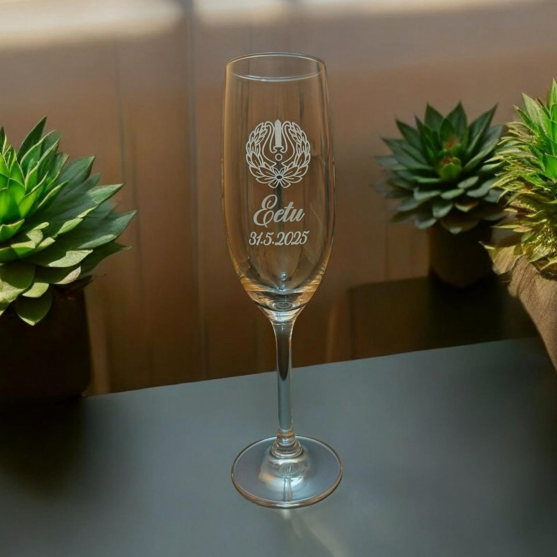 Tee ylioppilasjuhlista unohtumattomat tyylikkäällä kuohuviinilasilla, johon voit kaiverruttaa nimen, päivämäärän tai henkilökohtaisen viestin. Tämä elegantti lasi on täydellinen lahja vastavalmistuneelle – muisto, joka säilyy läpi elämän!